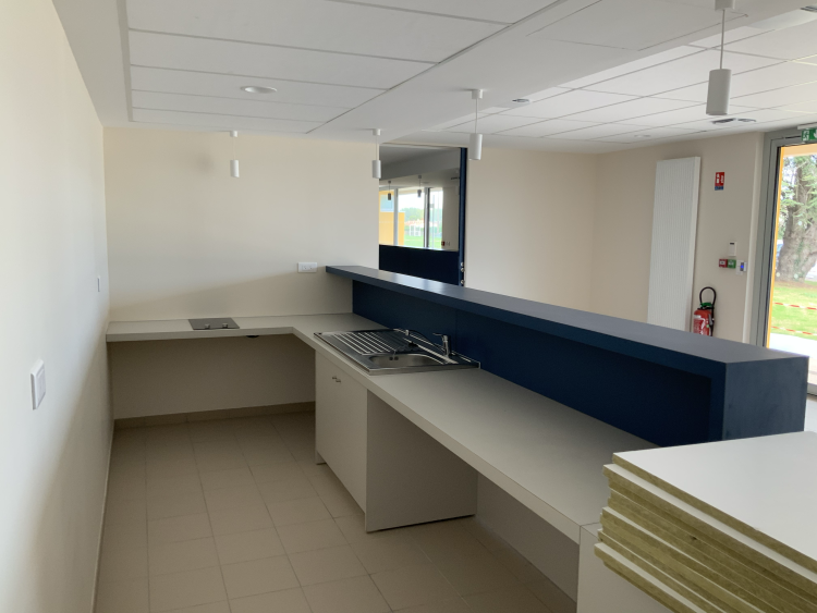 - Construction de vestiaires en extension du gymnase existant comprenant guichet/buvette, vestiaires, sanitaires, bureau gardien, bureau infirmière, locaux de rangement et techniqu
